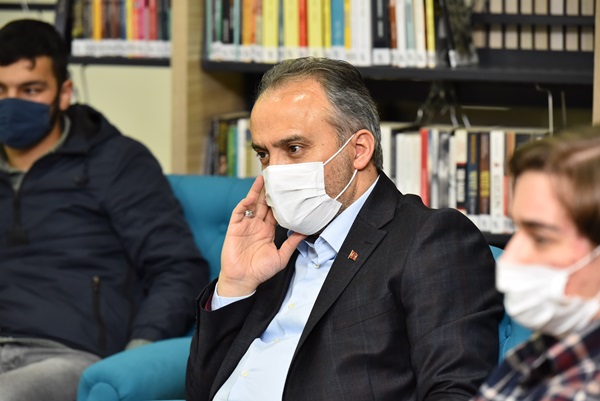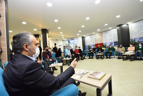Yıldırım Millet Kıraathanesi’nde KPSS ve YKS’ye hazırlanan gençlerle bir araya gelen Bursa Büyükşehir Belediye Başkanı Alinur Aktaş, gençlerin kente ve ülkeye dair görüşlerine büyük önem verdiklerini belirterek, “Bursa’mızın geleceğini gençlerle beraber şekillendirme noktasında kararlıyız” dedi.