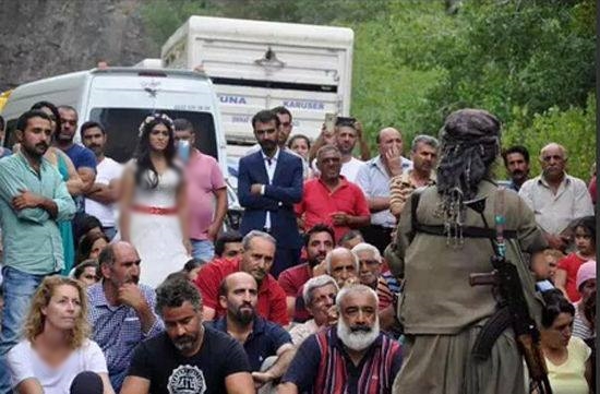 Durdurulan araçlar arasında düğün konvoyu da bulunuyordu. Örgüt mensupları, gelin-damat ve 50'e yakın vatandaşı araçtan indirip propaganda yaptı.