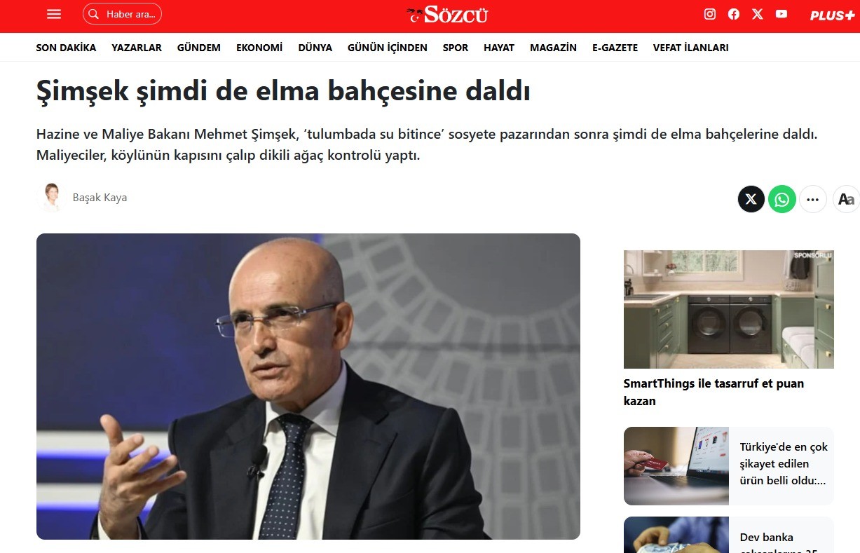 CHP beslemesi medya ve troller yalanları cezasız kalınca salladıkça sallamaya devam ediyor. Konuya ilişkin açıklama yapan Gelir İdaresi Başkanlığı (GİB), 'Hazine ve Maliye Bakanı Mehmet Şimşek'in meyve bahçelerine denetim yaptırdığı' yönündeki haberlerin yanıltıcı olduğunu bildirerek, 'İlgili bölgede ihbar üzerine inceleme ve yoklama yapıldı. Bu tip ihbarlar hiçbir şekilde Sayın Hazine ve Maliye Bakanı'mıza gelmez, ihbar ve şikayetler kendi mekanizması içerisinde merkez ve defterdarlık birimlerine yapılır.' ifadesini kullandı.