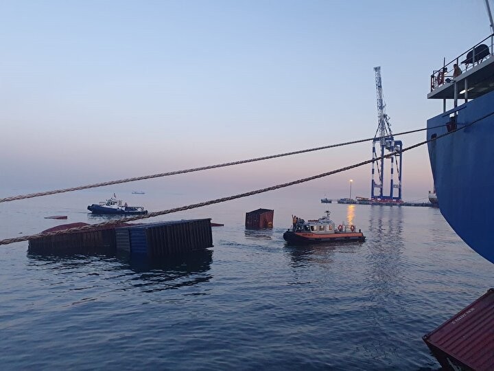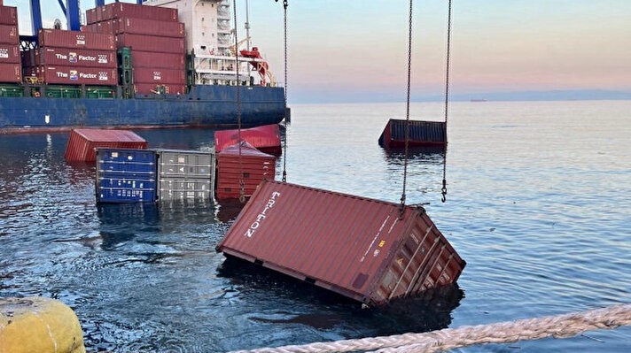 Konteynerlerden 8'i denizden alınırken, diğer konteynerleri kurtarma operasyonunun devam ettiği öğrenildi.
