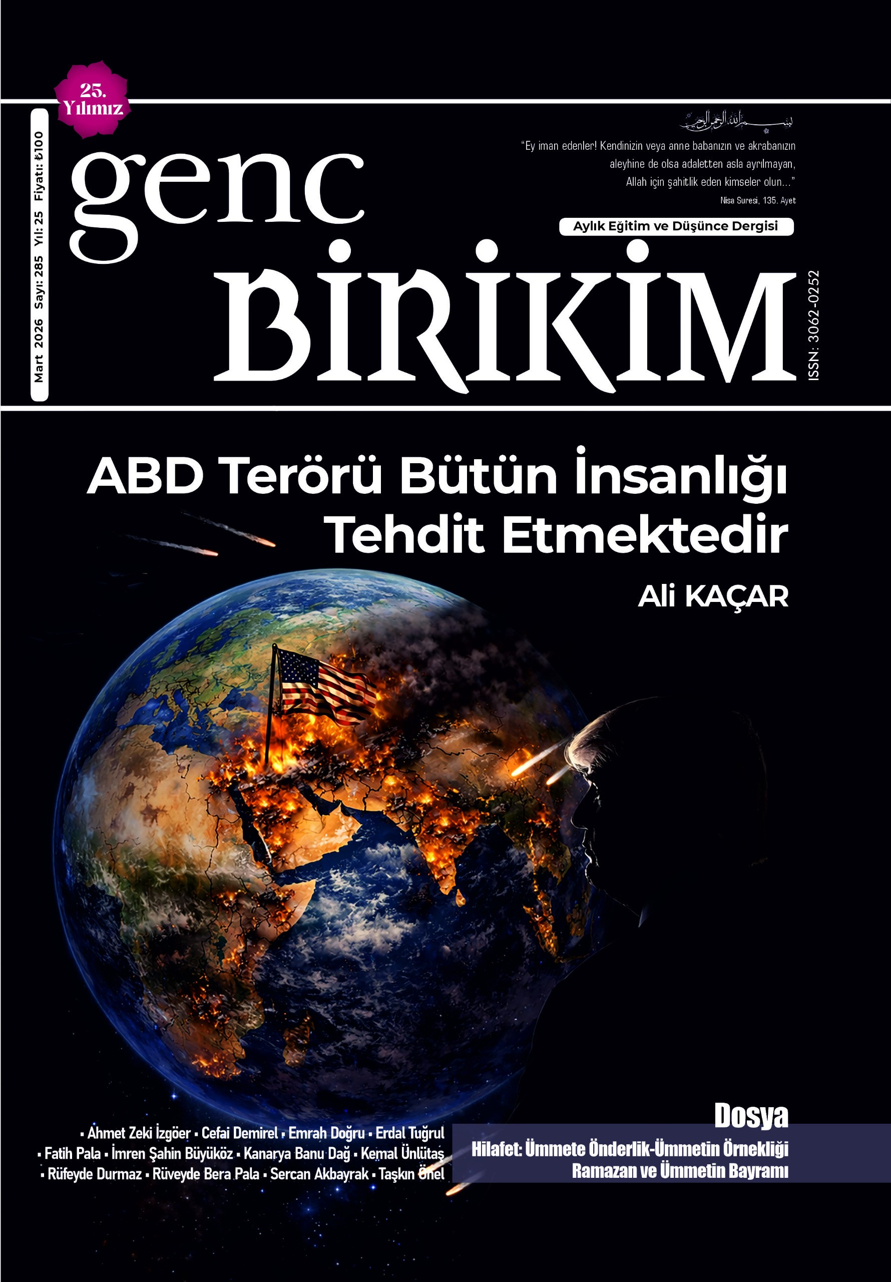 Yirmi beşinci yayın döneminin içerisinde olan ve gündemdeki gelişmeleri İslamî bakış açısıyla değerlendiren Genç Birikim dergisinin Mart 2026 (285.) sayısı çıktı.