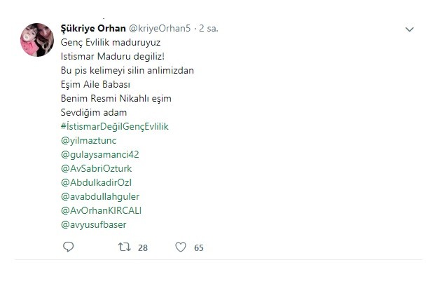 "Biz istismar değil, Genç Evlilik mağduruyuz. Bu pis kelimeyi alnımızdan silin.