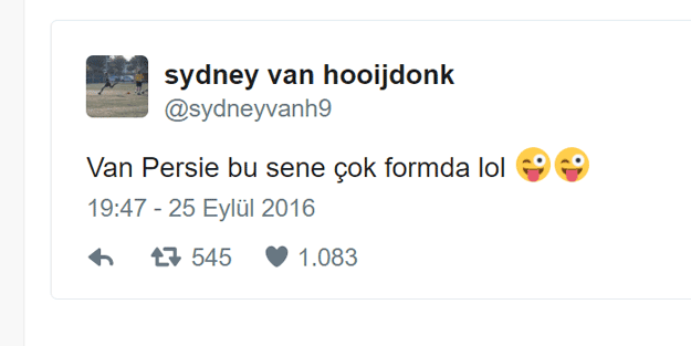 Bu tweetin atılmasının ardından Van Persie cephesinden herhangi bir açıklama gelip gelmeyeceği merakla beklenirken Sydney Van Hooijdonk'un tweetinin Türkçe yazmış olması dikkatlerden kaçmadı.
