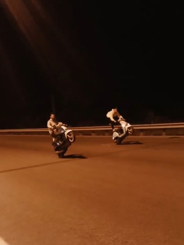 Gençlerden tehlikeli motosiklet yarışı! Akrobatik hareketlerle ölüme davetiye çıkardılar