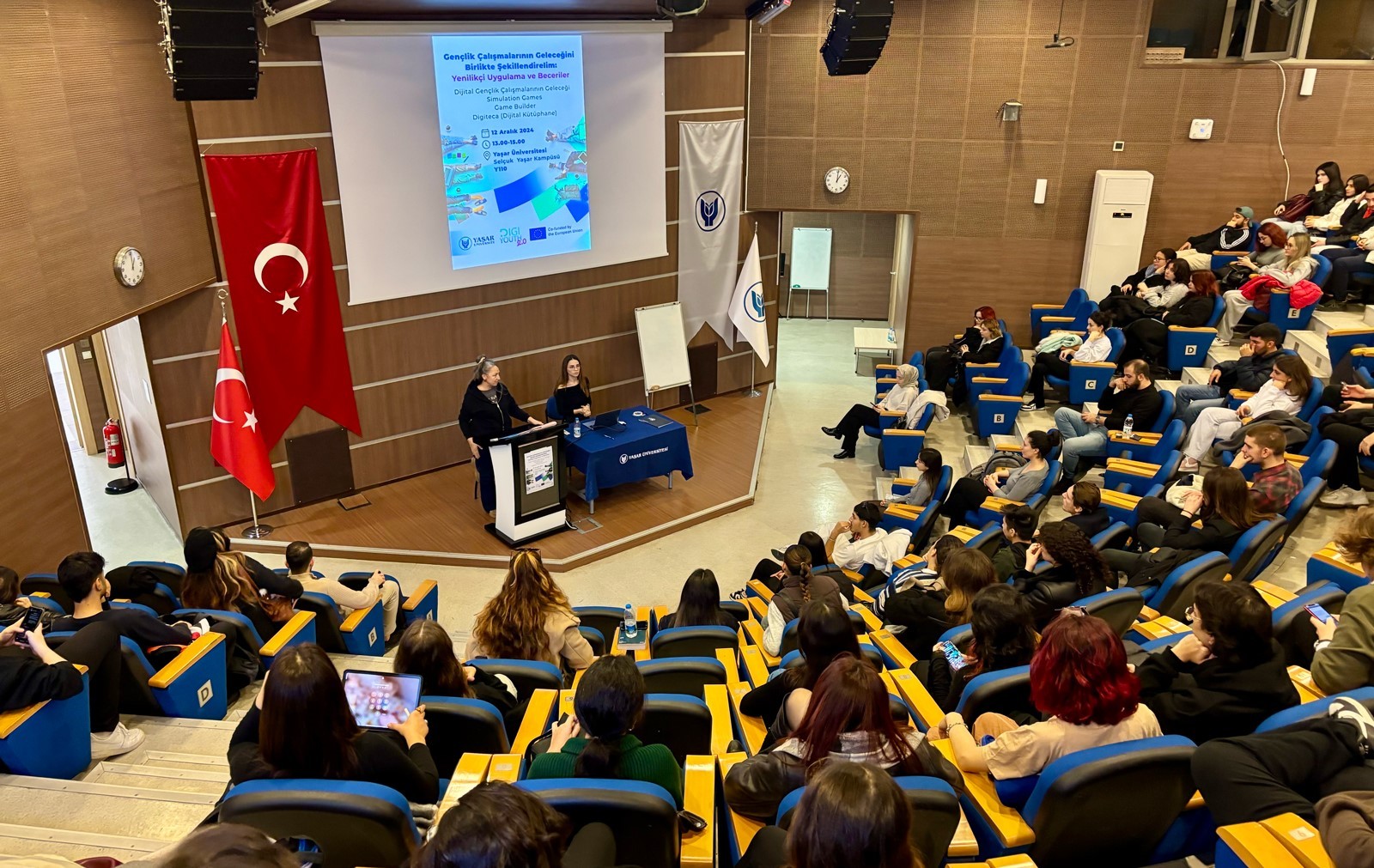 Türkiye’den Yaşar Üniversitesi, Yunanistan, Slovakya, Slovenya ve Bulgaristan’dan farklı üniversitelerin paydaşı olduğu DIGI-YOUTH Projesi’nin ilki başarıyla tamamlanmıştı. Yaşar Üniversitesi, Avrupa Birliği destekli DIGI-YOUTH 2.0 Projesi kapsamında ise “Dijital Gençlik Çalışmalarının Geleceğini Birlikte Şekillendirelim” etkinliğine ev sahipliği yaptı. Etkinlikte, gençlerin dijital beceriler kazanması için geliştirilen yenilikçi uygulamalar ve araçlar tanıtıldı. Katılımcılar, dijital kütüphanelerden simülasyon oyunlarına kadar pek çok interaktif uygulamayla tanıştı.