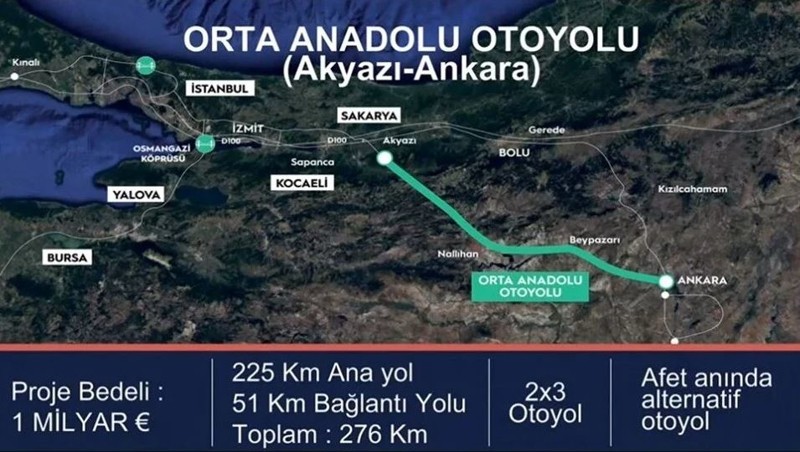 Şu anki güzergah, Bolu Dağı Tüneli ile devam edip Düzce üzerinde devam eden bir güzergah. Ayaş, Beypazarı, Nallıhan, Göynük, Akyazı üzerinden geçen bir güzergah var. Oradan geçmesinin daha uygun olacağını düşünüyoruz. Otoyolu o güzergahtan projelendiriyoruz.