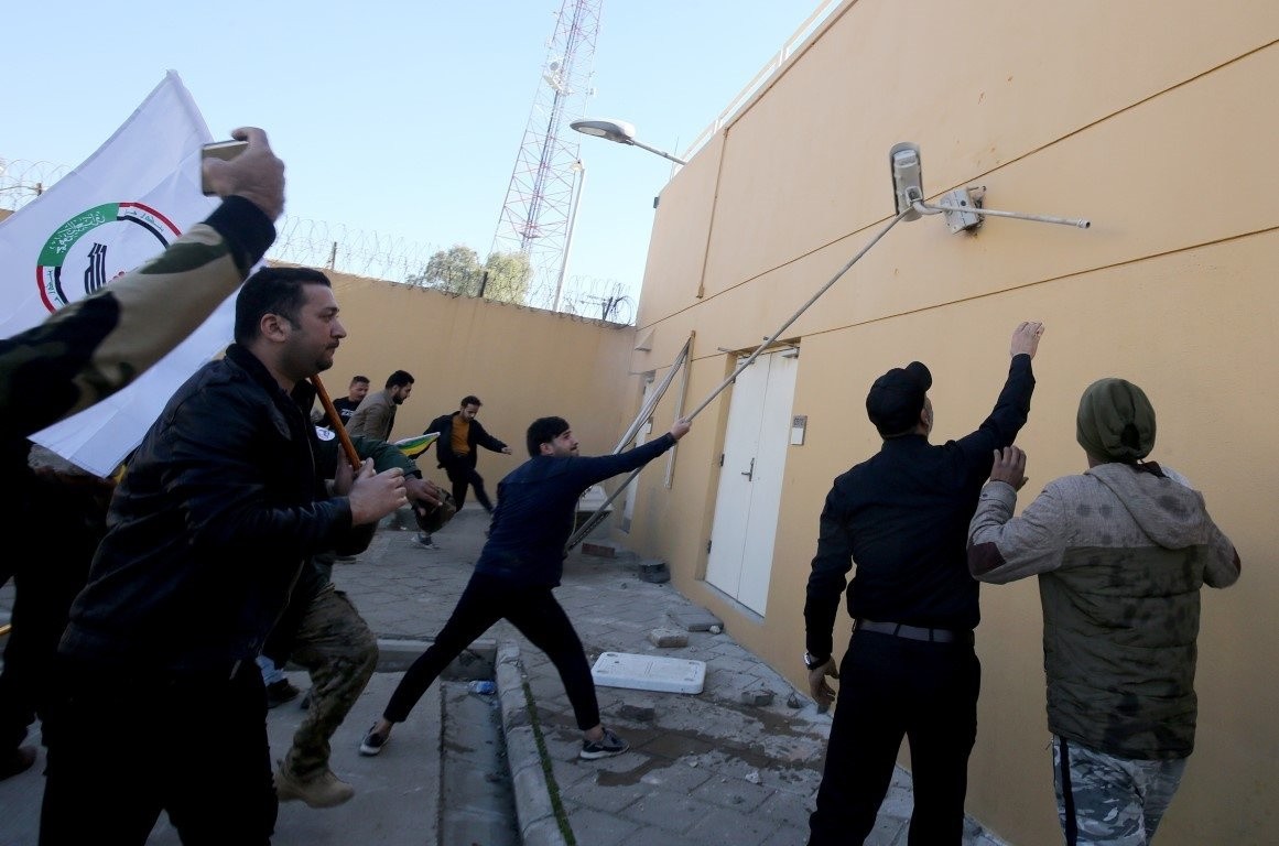 ABD yönetiminin Haşdi Şabi'ye bağlı Hizbullah Tugaylarına düzenlediği saldırıyı protesto etmek için sabah saatlerinde Bağdat'taki ABD Büyükelçiliği önünde toplanan yüzlerce kişi, önce elçilik binasının duvarını ateşe vermiş ardından içeri girmişti. Elçilikteki güvenlik güçlerinin göstericilere müdahale etmesi sonucu 20 eylemci yaralanmıştı. Irak Başbakanı Adil Abdulmehdi de yaşanan gerginlik nedeniyle protestoculara elçilik binası önünden acilen ayrılmaları çağrısında bulunmuştu.