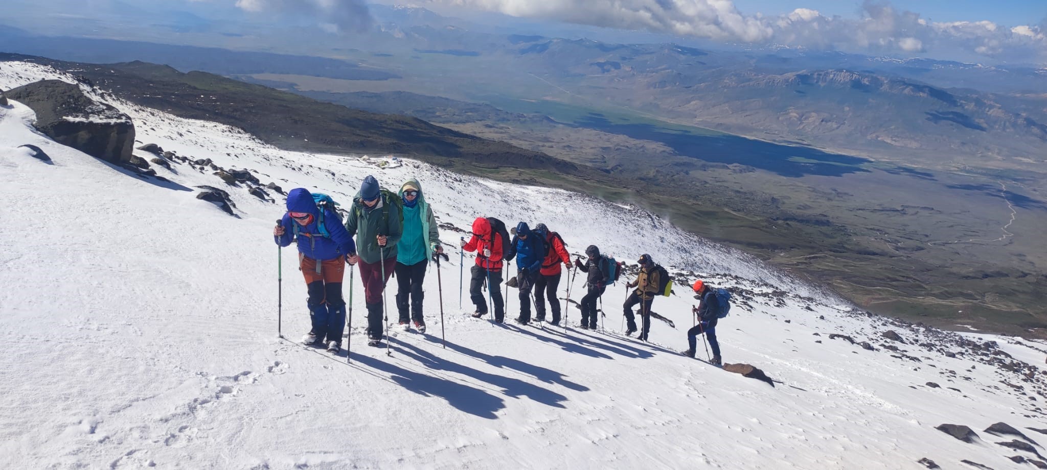 Rusya’dan gelen 5’i kadın toplam 9 dağcı, Ağrı’nın Doğubayazıt ilçesinde dağcı Cuma Saltik rehberliğinde Ağrı Dağı’na tırmanmak için hazırlık yaptı. Tamamlanan hazırlıkların ardından tırmanışa geçen Rus dağcılar, 4 bin 200 rakıma kadar çıktılar. Burada tipiye yakalanan dağcılar, daha fazla ilerleyemeyecekleri için geri dönmek zorunda kaldı.