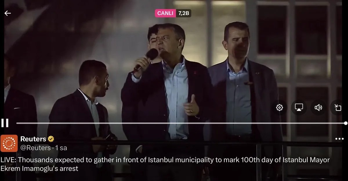 CHP'nin çağrısı sonrası bazı marjinal çapulcular, Ekrem İmamoğlu’nun yolsuzluktan tutuklanmasının 100. gününde Saraçhane’de izinsiz eylem düzenledi. İngiliz haber ajansı Reuters da mitindeki hedef gösterici konuşmaları ve yaşanan olayları canlı yayınına taşıdı.
