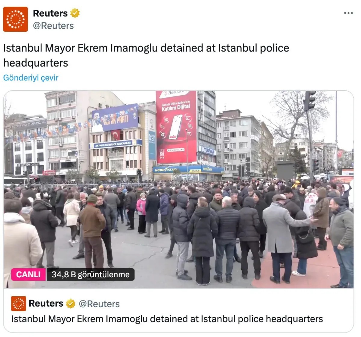 Reuters, daha önce İmamoğlu hakkında verilen mahkeme kararlarını da “muhalefete darbe” başlıklarıyla servis etmiş ve bu süreçteki tüm olayları ve iktidar karşıtı konuşmaları canı yayınlarına taşımıştı.