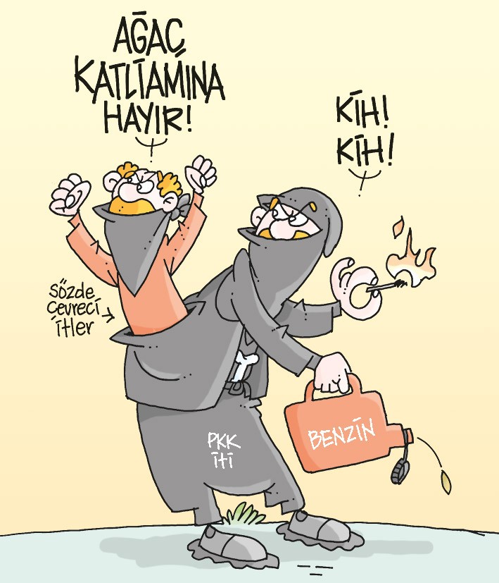 Sözde çevreci hassasiyetlerle ülkemizi yangın yerine çeviren çapulcuların, 11 Temmuz-24 Ağustos tarihleri arasında çıkan bütün orman yangınlarını terör örgütü PKK’nın üstlenmesi karşısında üç maymunu oynaması dikkat çekti. Gezi Parkı ve Kaz Dağları provokasyonunda en önde giden ve aslı astarı olmayan açıklamalarla halkı galeyana getiren, CHP, HDP, TEMA, Halkevleri, TMMOB ve daha birçok STK, bin 344 hektarlık ormanlık alanın “Ateşin Çocukları” isimli terör grubu tarafından yakılmasına kör kaldı. Yayınladıkları küstah bildiriyle ormanları yaktıklarını kabul eden hainlerin ihaneti karşısında sus pus olan çapulcu zihniyetin samimiyetsizliği de gün yüzüne çıkmış oldu.