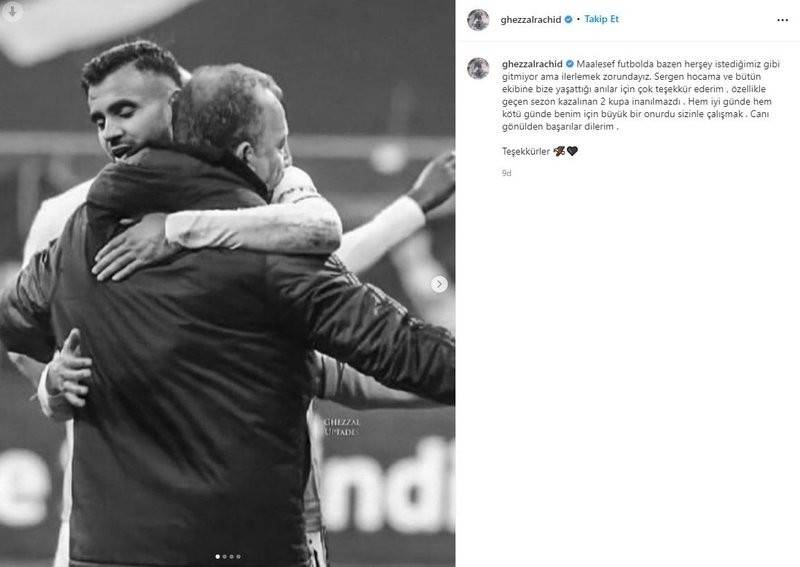 Beşiktaş'ta Sergen Yalçın'ın istifasının yankıları sürüyor. Ghezzal da tecrübeli teknik adam için veda mesajı yayınladı. Cezayirli yıldız yaptığı paylaşımda, "Maalesef futbolda bazen her şey istediğimiz gibi gitmiyor. Sergen hocama ve bütün ekibine bize yaşattığı anılar için çok teşekkür ederim. Hem iyi günde hem kötü günde sizinle çalışmak benim için büyük bir onurdu. Canı gönülden başarılar dilerim. Teşekkürler" ifadelerini kullandı.