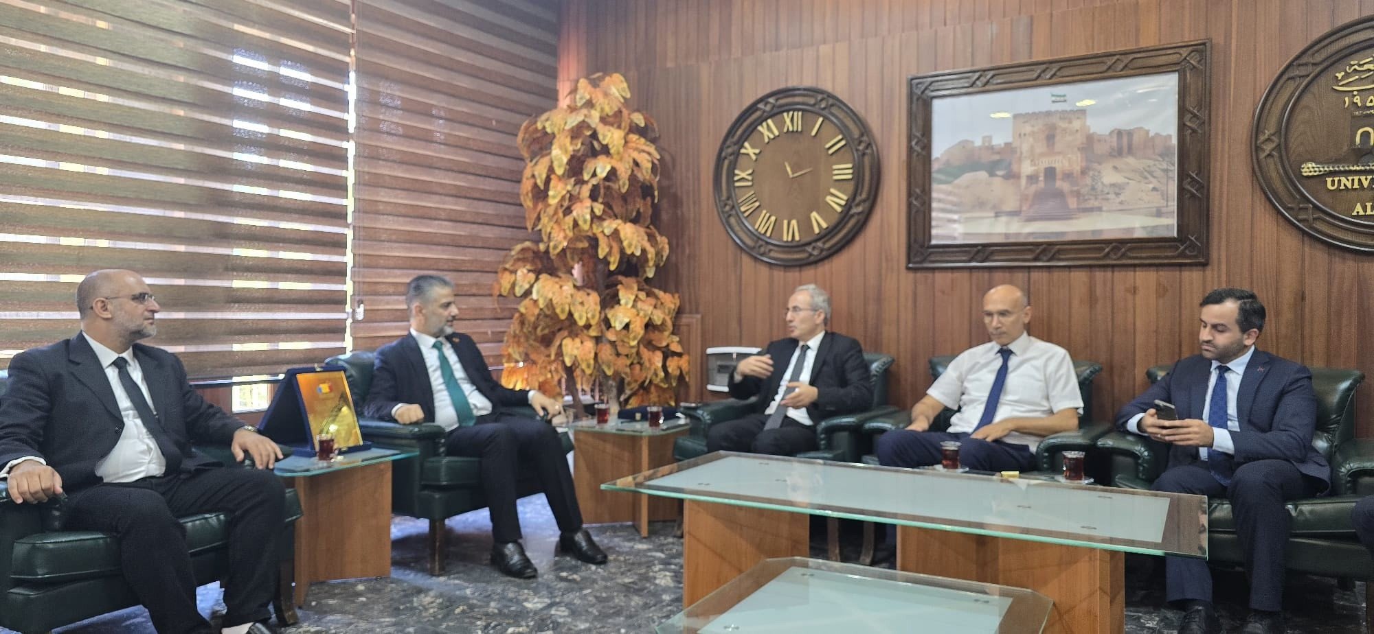 Heyet, ilk olarak Halep Üniversitesi’ni ziyaret ederek Rektör Prof. Dr. Muhammed Osama Raddon ile bir araya geldi. İki üniversite arasında akademik, kültürel ve bilimsel iş birliklerinin geliştirilmesine yönelik verimli görüşmeler gerçekleştirildi. Ziyaret hakkında açıklamada bulunan Rektör Prof. Dr. Şehmus Demir, şunları söyledi: “Bölgesel akademik iş birliği ve dayanışmayı güçlendirme vizyonu doğrultusunda Halep Üniversitesi’ni ziyaret ettik. Bu anlamlı ziyarette, Halep Üniversitesi Rektörü Prof. Dr. Muhammed Osama Raddon ile bir araya gelerek ortak projeler ve iş birliği imkânları üzerine verimli bir müzakere gerçekleştirdik. Üniversite olarak, sınır komşumuz Halep Üniversitesi’ne her türlü akademik, kültürel ve bilimsel desteği sağlamaya hazır olduğumuzu bir kez daha vurguladık. Bilim ve eğitim yoluyla kurulan köprülerin kalıcı barışa katkı sağlayacağına inanıyor, bu buluşmanın gelecekteki ortak adımlar için güçlü bir zemin oluşturmasını temenni ediyoruz.”