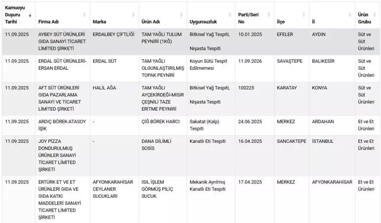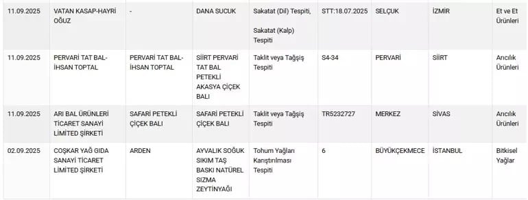 Tarım ve Orman Bakanlığı’nın yaptığı son denetimler, mutfaklarımızda güvenle tükettiğimiz ürünler hakkındaki endişeleri artırdı. Bakanlık, taklit ve tağşiş yapan firmaların güncellenmiş listesini kamuoyuna açıkladı.