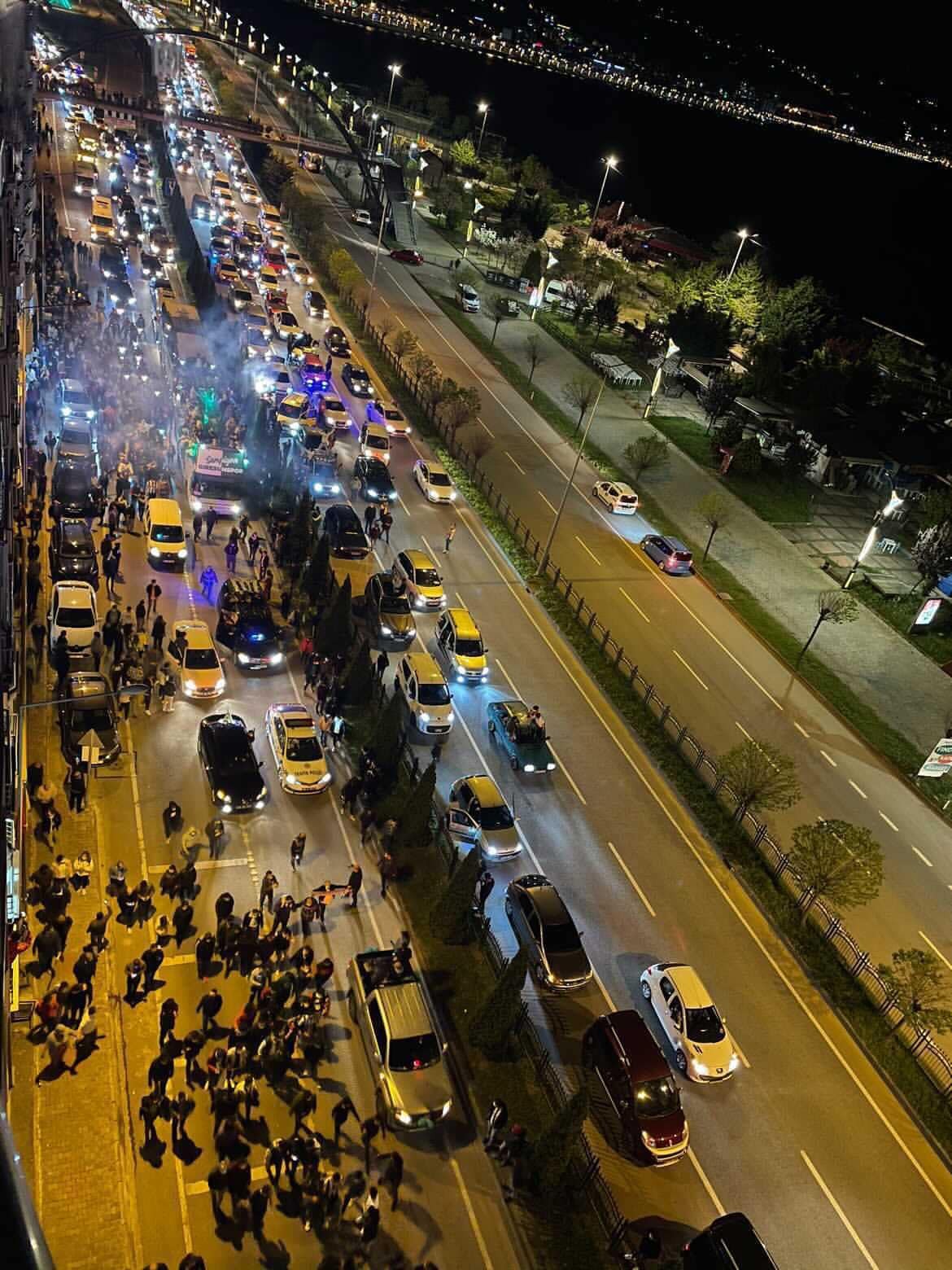 Büyük bir araç konvoyunun eşlik ettiği otobüs Giresun şehir merkezine saatler sonra ulaşabildi. Sahil şeridi boyunca taraftarların büyük bir coşkuyla karşıladığı konvoy ilerlemek te zorlandı.