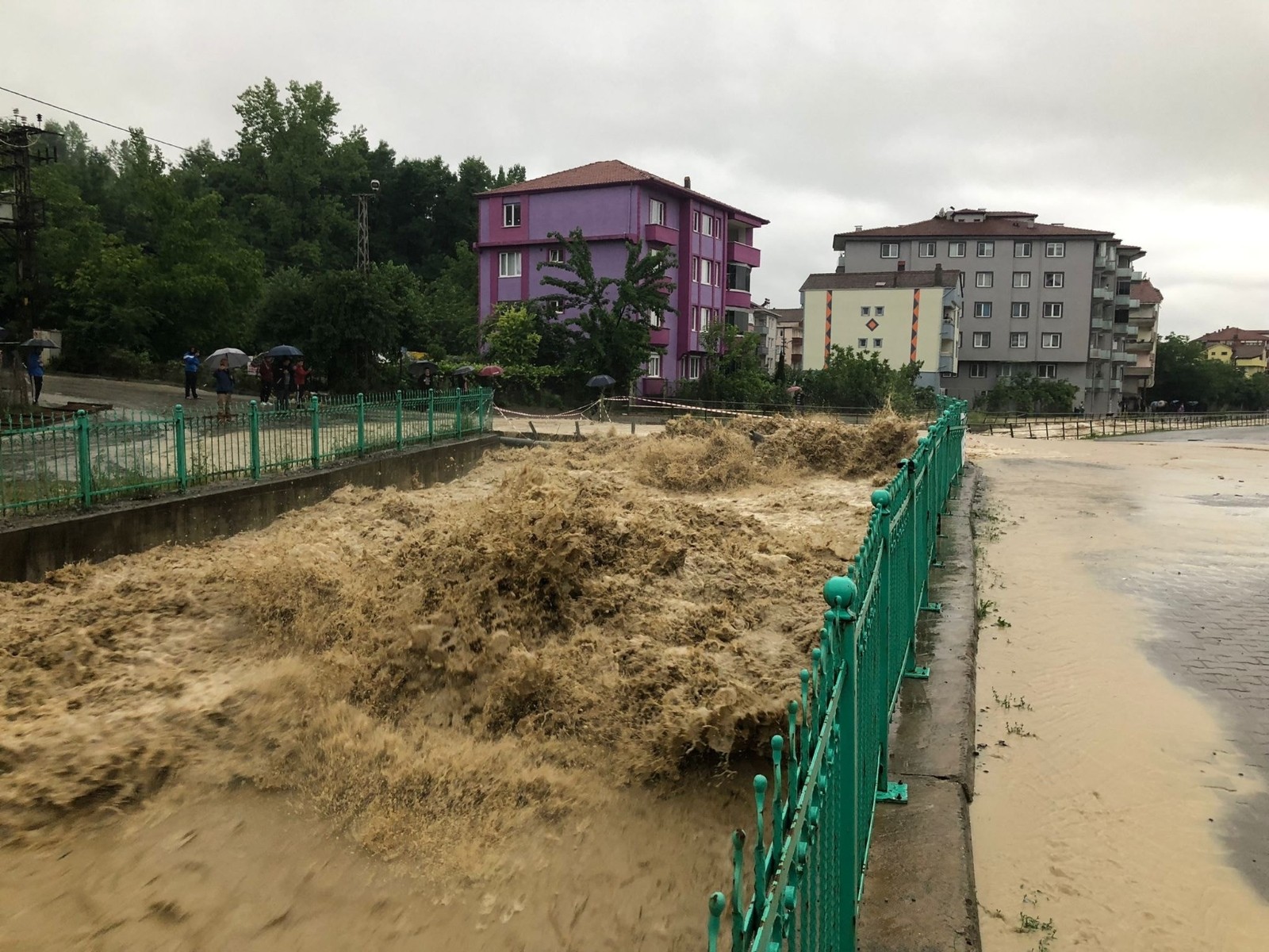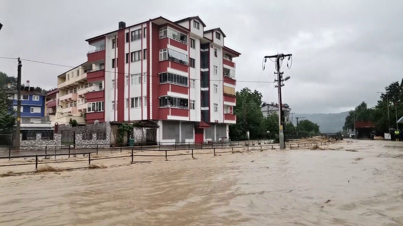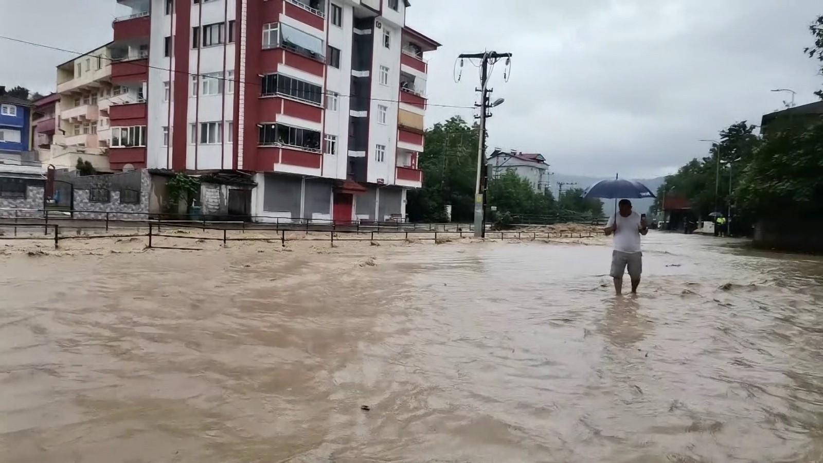 Zonguldak’ın Gökçebey ilçesinde kuvvetli yağış sonrası dere taştı. Yollar göle dönerken, bazı evler sular altında kaldı.