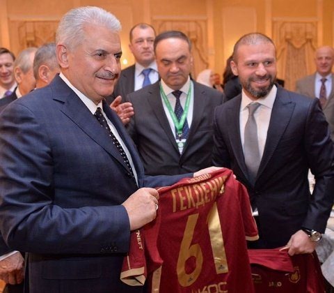 Rubin Kazan forması giyen Gökdeniz Karadeniz, Tataristan başkenti Kazan'ı ziyaret eden Başbakan Binali Yıldırım'a forma hediye etti.