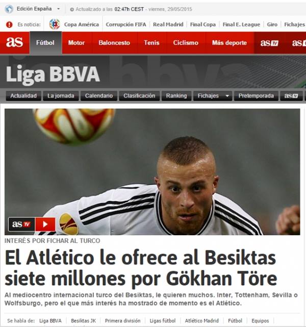 İspanyol AS Gazetesi'nin haberine göre; Türk basınında yer alan iddiaların aksine Gökhan için Beşiktaş'a teklif yapan tek takım Atletico Madrid. Atletico'nun Töre için 7 milyon euro teklif ettiği, Southampton'ın ise 6 milyon euro teklif etmeye hazırlandığı iddiaları ise Türk basınında yankı bulduğu ifade edildi.