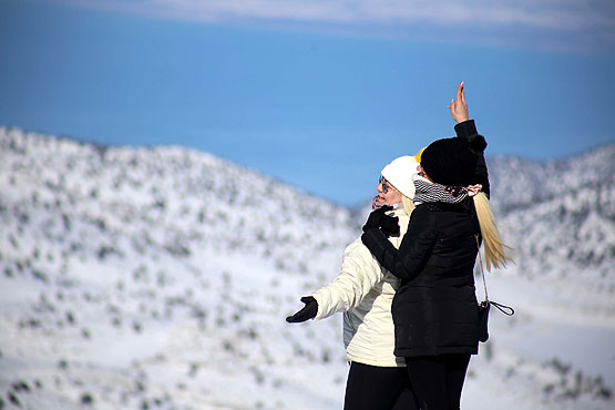 Isparta'daki Davraz Kayak Merkezi'ne gelenler, Türkiye'nin en büyük dördüncü gölü olan Eğirdir Gölü manzarasında kayak yapma imkanı buluyor.