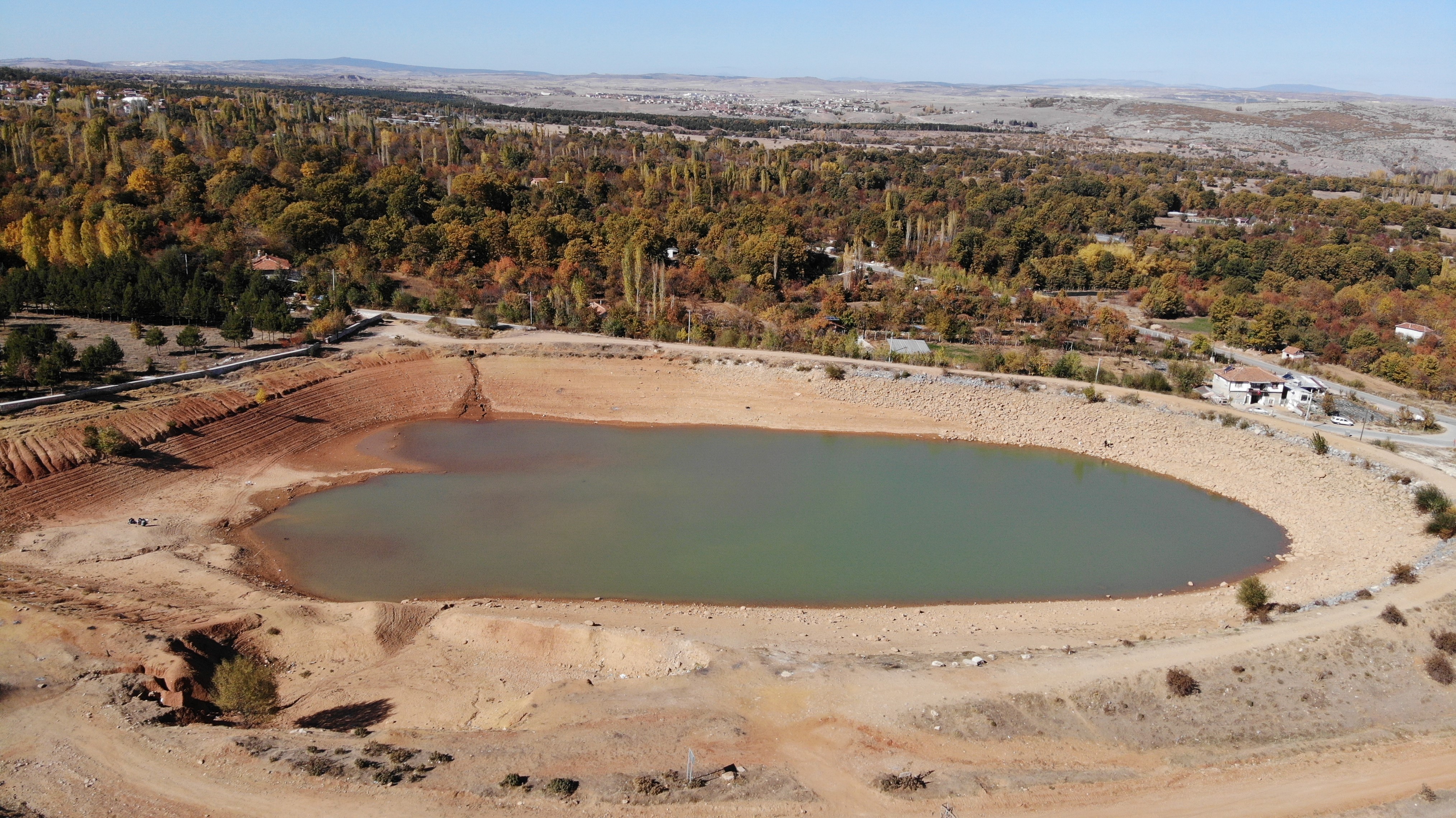 Göletteki su seviyesi, İHA tarafından havadan da görüntülendi.