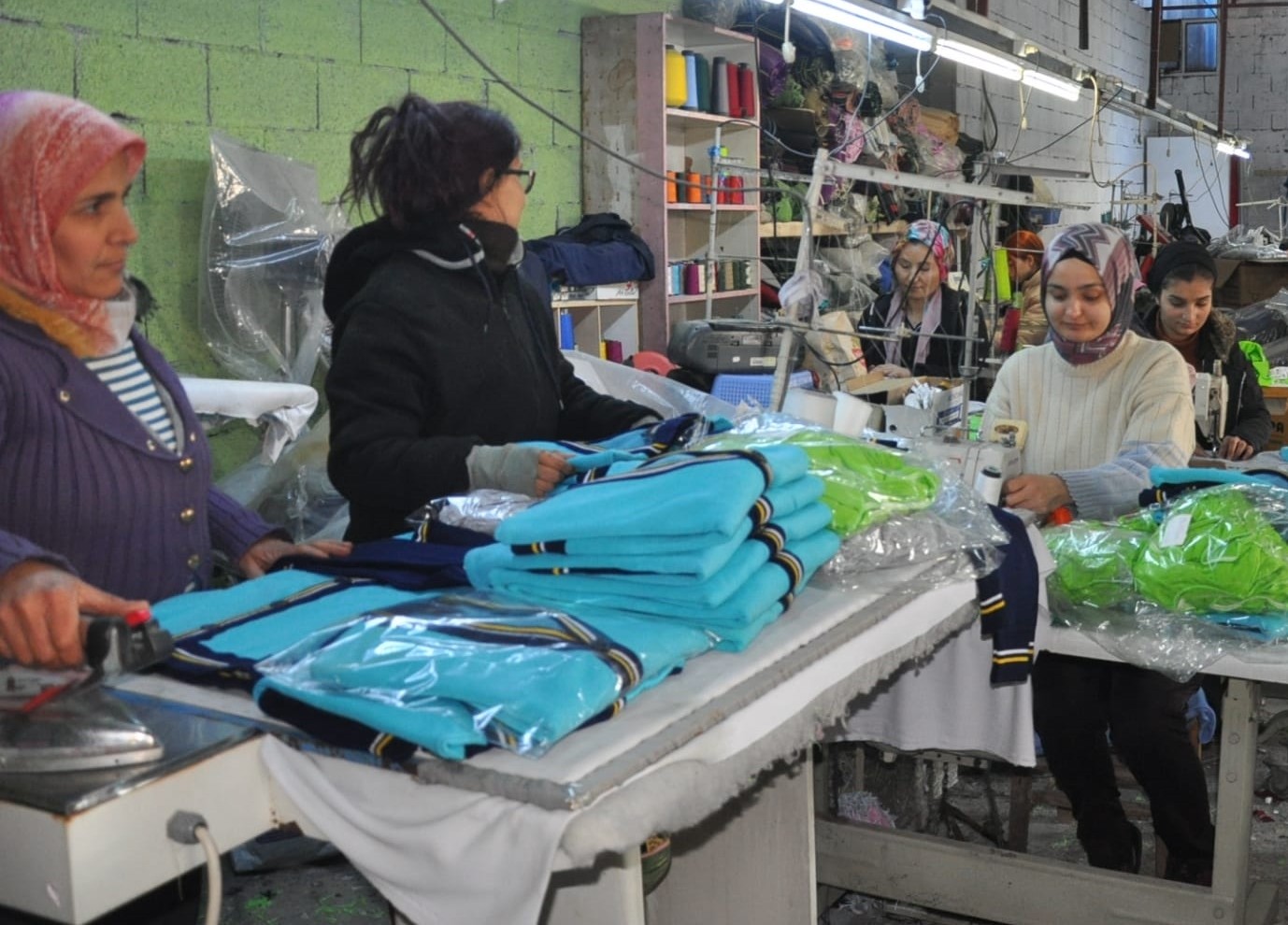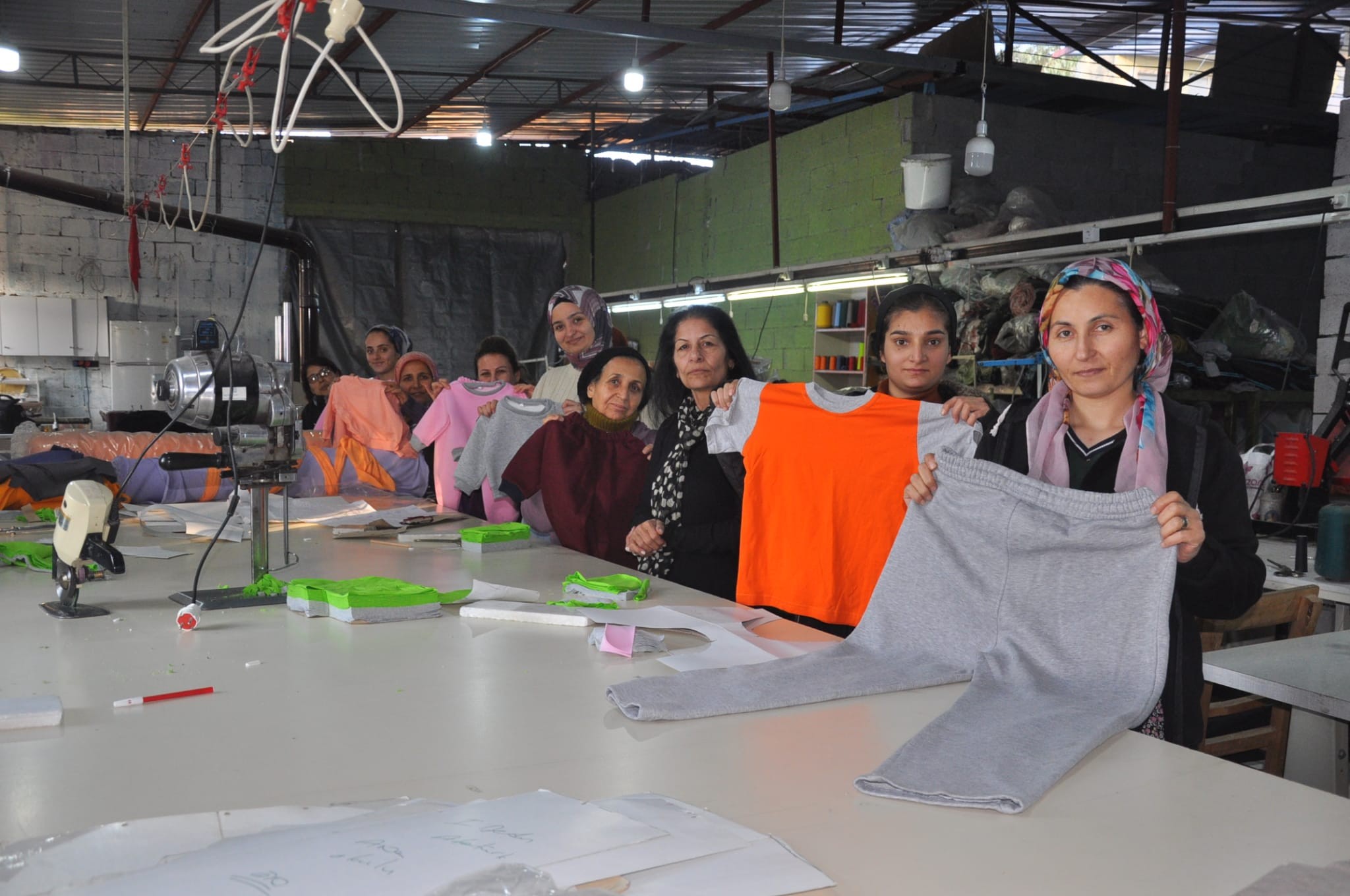 Tarsus ilçesindeki atölyenin işletmecisi Nurcan Yıldız, depremzedelere yardım amacıyla ilçede gönüllü çalışabilecek kadınlarla irtibata geçti. Mesaiye başlayan kadınların, ihtiyaç listelerine göre ürettiği kıyafet ve iç çamaşırlar, deprem bölgesine gönderiliyor.