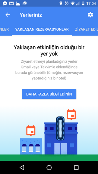 Google tarafından eklenen başka bir önemli gelişme Gmail ile ilgili oldu. Temel olarak Android kullanıcıları Gmail'de otel, uçuş veya restoran rezervasyonları için onay e-postaları aldığında Harita içinde gösterilecek. Diğer olaylar gibi bu rezervasyonlar da "Yaklaşan" sekmesi altında listelenecek.