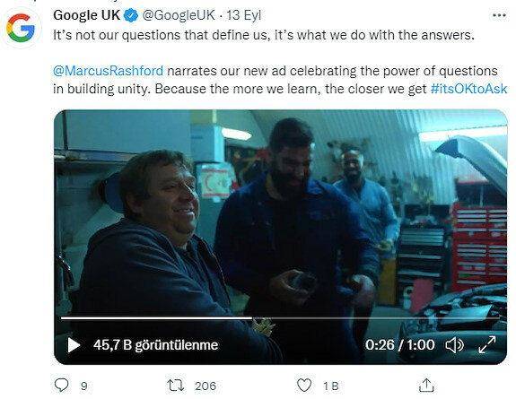 Google, Birleşik Krallık hesabından yeni reklam filmini yayınladı. Reklam filminin Twitter'da yayınlanan versiyonunda arka planda KKTC bayrağına yer verildi. Ancak aynı reklamın YouTube'da KKTC bayrağı olmadan paylaşıldığı görüldü.