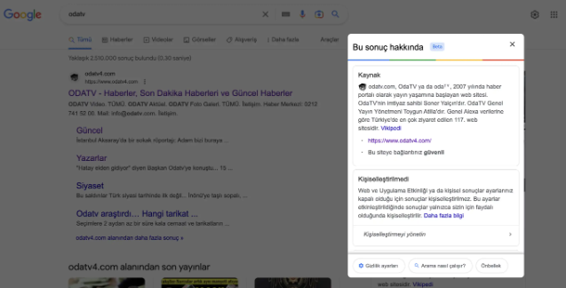 Bunlarda biri de "Bu sonuç hakkında"ydı. Oldukça geliştirilen bu özellikle kullanıcılar, arama sonuçlarında karşılarına çıkan web siteleriyle ilgili daha fazla ayrıntı öğrenebiliyor ve o sitelere güvenip güvenmeme kararını daha bir bilinçli şekilde verebiliyor.