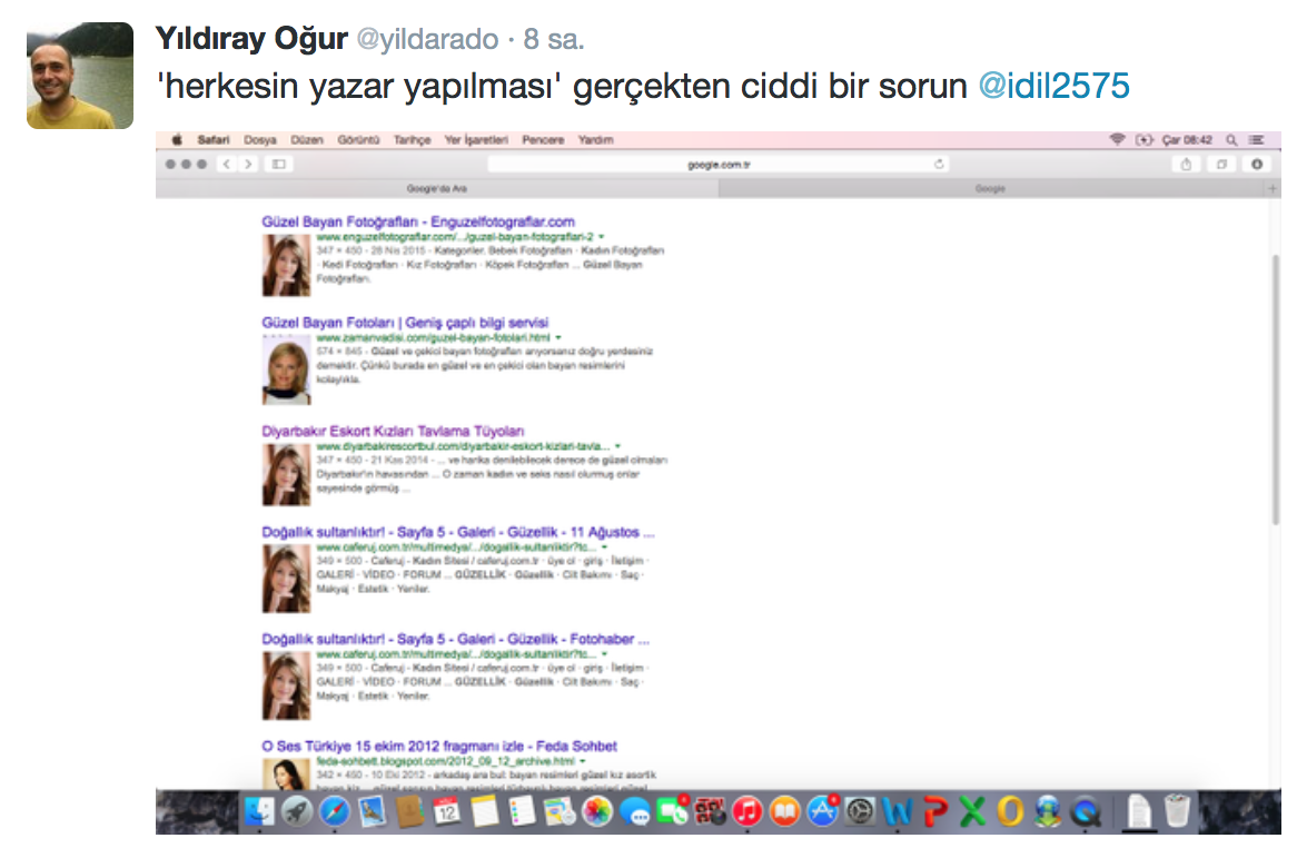 Oğur da Twitter profilindeki fotoğrafı internette basit bir aramadan geçirerek İdil Bulur adındaki trolün ipliğini pazara çıkarmaya başlıyor.