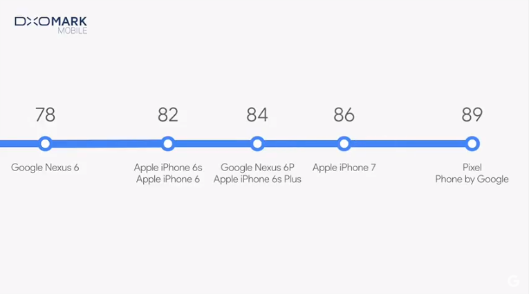 Pixel telefonların kamerası da bir hayli iddialı. DxoMark tarafından üretilen kamera, 89 puan alarak rakiplerinden sıyrılmayı başarıyor. Google'ın iddiasına göre Pixel'in kamerası gelmiş geçmiş en iyi kamera deneyimini sunan akıllı telefon kamerası. Smartburst özelliği ve HDR+ ile çok daha kaliteli ve canlı görüntüler sunuyor. Ayrıca kamera lensinin çıkıntılı olmaması da dikkat çekiyor. Video kaydı yaparken optik görüntü sabitleyici sayesinde düzgün video kaydı yapabiliyor.