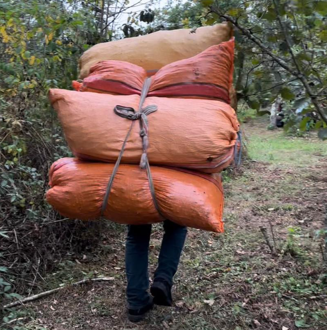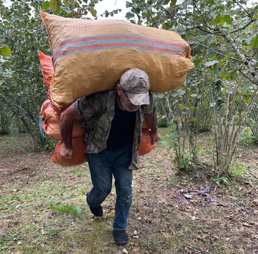 Engebeli arazilerde yetişen fındığın bahçeden toplanıp harmana taşınması bir hayli zor. Giresunlular topladıkları fındıkları çuvallara koyarak evlerinin önündeki harmana getirmek zorundalar. Fındıklar harmana çuvallar ile taşınıyor. Her bir çuvalın tanesi yaklaşık 50 kg. Fındığın yokuş yukarı taşınması ise bu ağırlığı iki katına çıkartıyor.