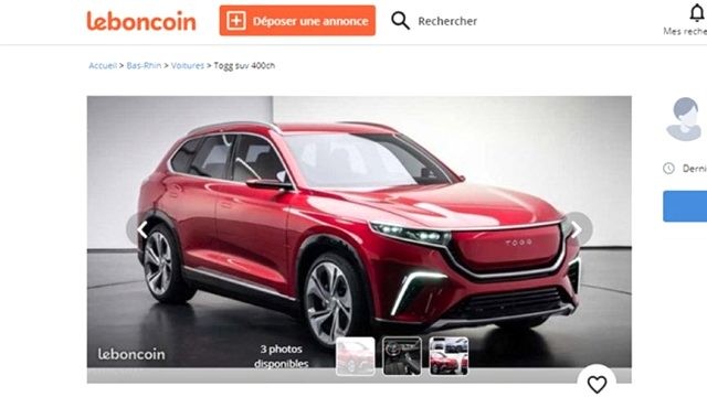 2022 yılında seri üretime geçecek Türkiye'nin ilk elektrikli yerli otomobili TOGG, Fransa'nın en büyük, ikinci el alışveriş platformu Leboncoin'da sahte bir ilanla satışa çıktı.