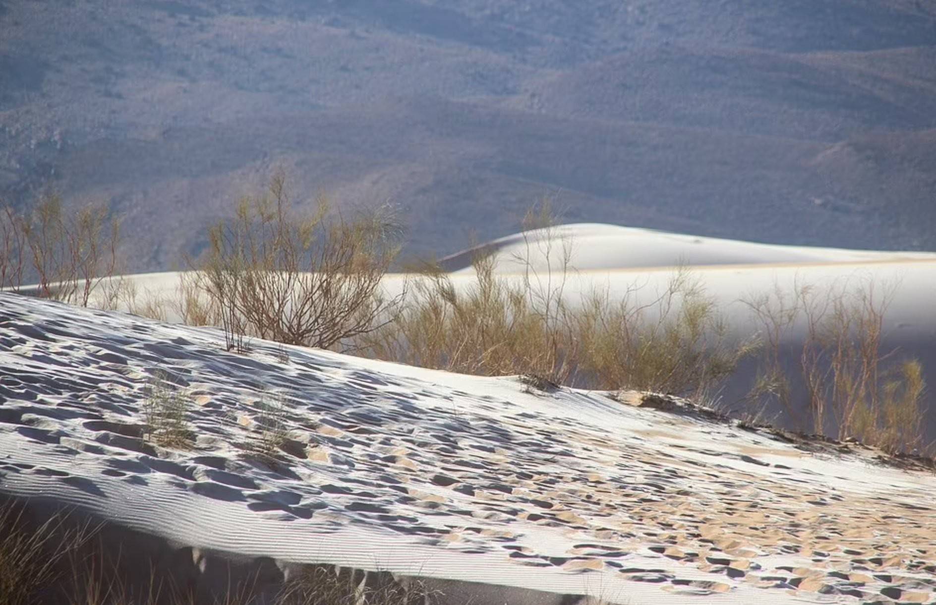 Fotoğrafçı Karim Bouchetata tarafından çekilen fotoğraflarda Sahra Çölü'nün Ayn Sefra bölgesinde kalan kısmındaki karla kaplı çöl alanları gözler önüne serildi.
