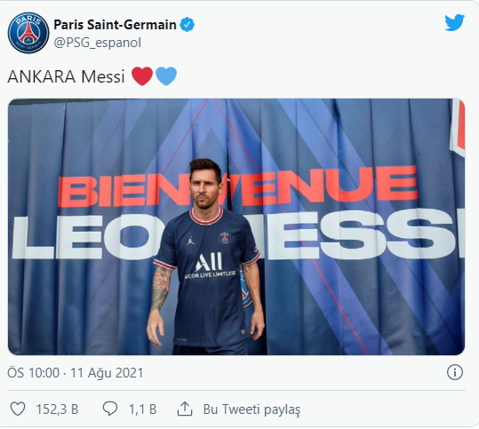 Barcelona'dan ayrılan Arjantinli yıldız Lionel Messi ile sözleşme imzalayan Fransa Ligue 1 ekibi Paris Saint-Germain'in yaptığı paylaşım, Türk futbolseverlerin dikkatini çekti.