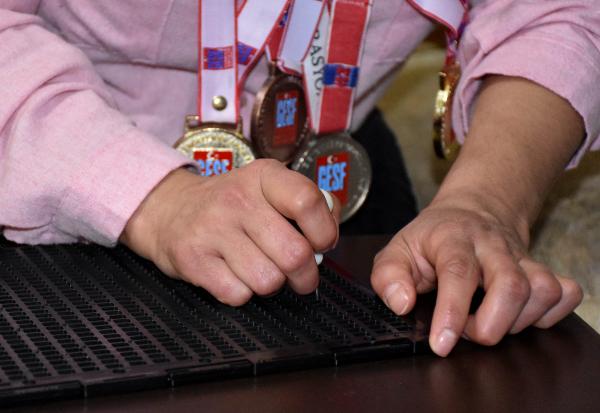 Sivas'ta, 10 yaşında yanlış tedavi sonucu görme yetisini kaybeden Gülten Kangal, judo ve halterle uğraşıyor. Aynı zamanda Sivas Cumhuriyet Üniversitesi Beden Eğitimi Fakültesi Spor Yöneticiliği Bölümü'nde eğitim gören milli sporcu, katıldığı yarışmalarda birçok madalya kazandı.
