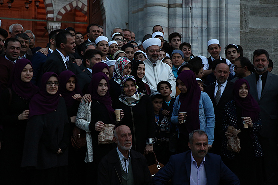 Mehmet Görmez ve eşi Hatice Görmez camiye gelenlere, avludaki çorba çeşmesinden çorba ve şerbet dağıttı. Görmez, Diyanet tarafından umreye gönderilen Roman kadınlarla ve hafızlık öğrencileriyle de fotoğraf çektirdi.