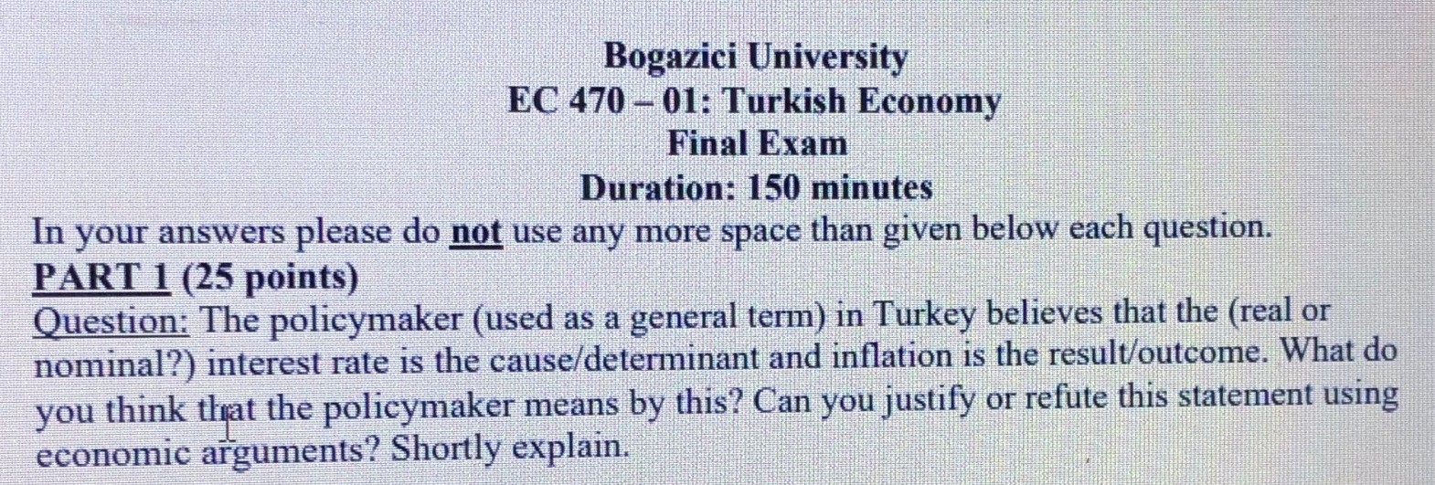 Türkiye’deki politika, faizin sebep, enflasyonun ise sonuç olduğuna inanır. Bu sizce ne anlama geliyor? Bu ifadeyi ekonomik argümanlar kullanarak, kısaca savunun veya reddedin.
