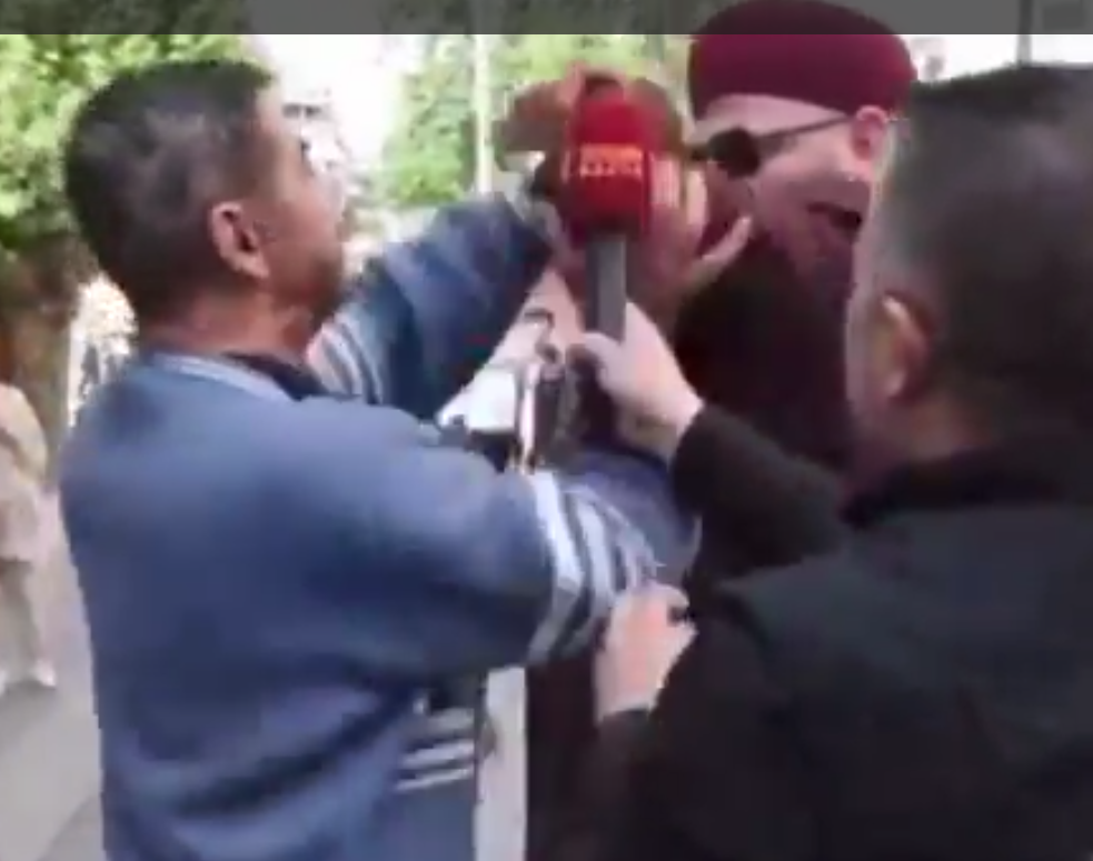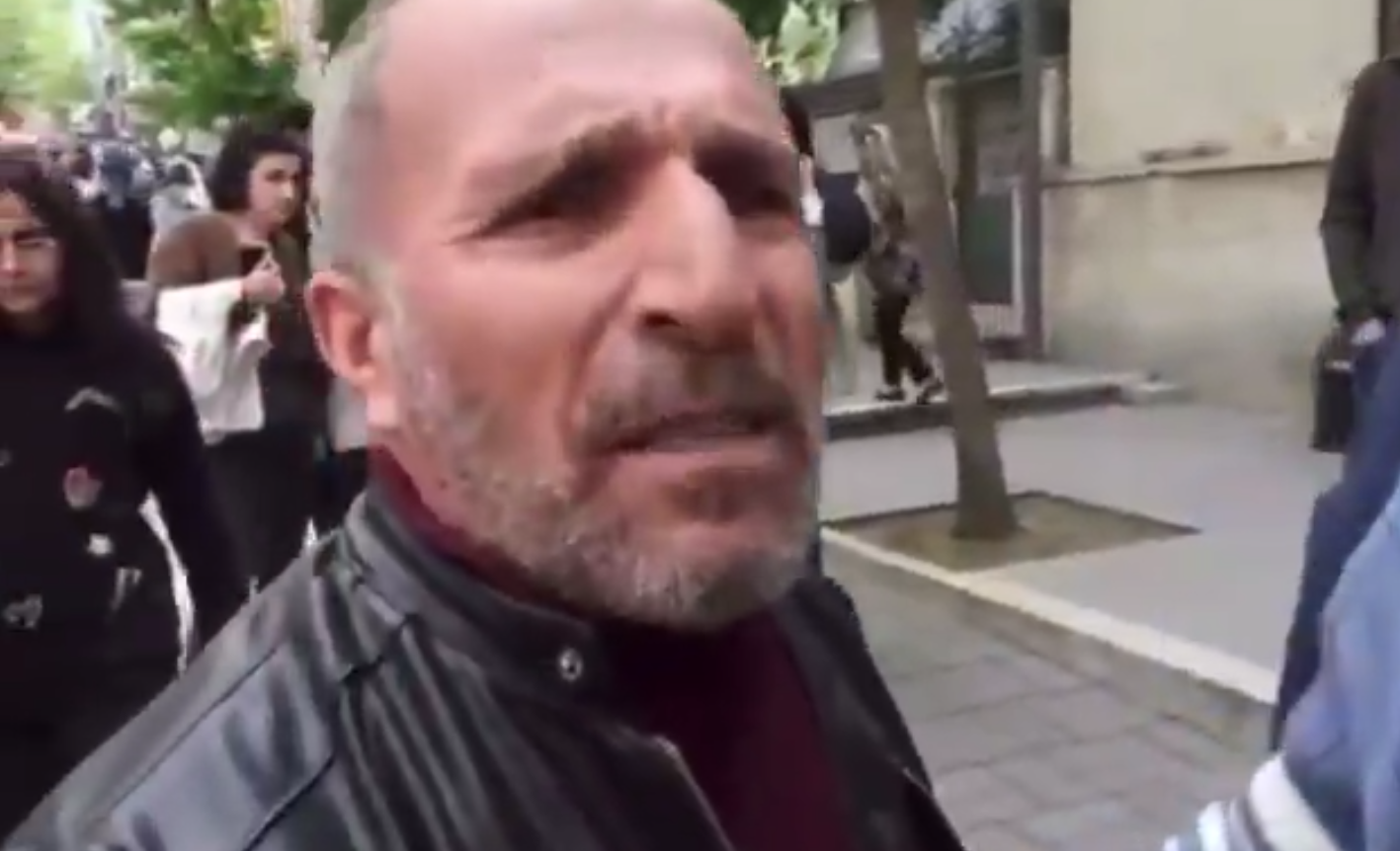 Görüntülerde, hiçbir provokasyon olmadan yürüyen vatandaşın yalnızca dini kimliği yansıtan kıyafeti yüzünden hedef alındığı görülüyor.
