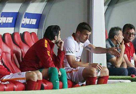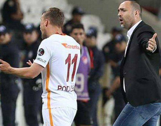 Galatasaray'ın yıldız oyuncusu Lukas Podolski oyundan çıkarken Hırvat çalıştırıcı Igor Tudor'a tepki gösterdi.