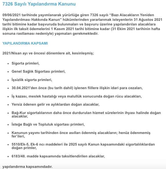 Yapılandırma şartları, yapılandırma taksit ödemeleri ve daha fazla detaylar için tıklayın