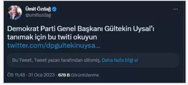 Demokrat Parti Genel Başkanı Gültekin Uysal'ın, Zafer Partisi lideri Ümit Özdağ'ın kendisi hakkındaki iddialarına ilişkin yaptığı paylaşım sosyal medyada tepki topladı.