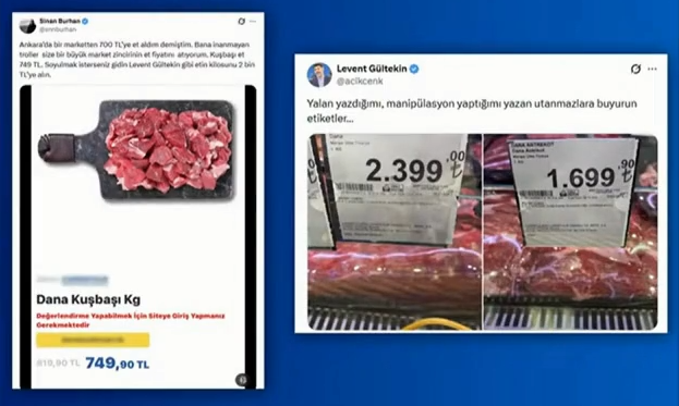 Programda Levent Gültekin, Fransa menşeli bir et markası olan “Şatobriyan” üzerinden örnek vererek, Türkiye’de et fiyatlarının 2.400 TL’ye kadar çıktığını savundu. Gültekin ayrıca Türkiye’de et fiyatlarının Avrupa’ya kıyasla çok daha pahalı olduğunu, hatta “Avrupa’nın dört katı fiyatına et yiyoruz” ifadelerini kullandı.