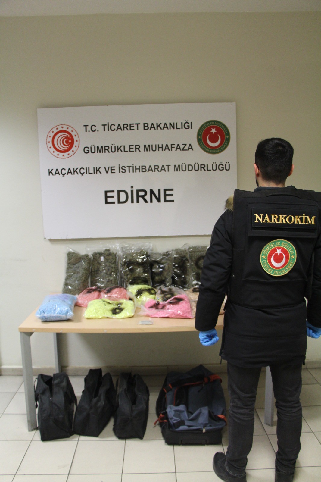 Almanya’dan yola çıkan ve Bulgaristan üzerinden Türkiye’ye giriş yapmak üzere gümrük sahasına gelen araç, ileri teknoloji tespit yöntemlerinin uygulandığı kontrol aşamalarından geçirildi. Kontrol sırasında görüntülerde dorsenin altında şüpheli nesneler bulunduğu tespit edildi. Bunun üzerine arama hangarına alınan araç, narkotik dedektör köpekler eşliğinde aramaya tabi tutulurken, dedektör köpeklerin aynı bölgeye tepki verdiği görüldü. Peşi sıra yapılan detaylı kontrol neticesinde şüpheli bölgede bulunan çantaların içerisinde paketler halinde uyuşturucu madde olduğu ortaya çıkarıldı. Yapılan analizlerde 25,5 kilogram ecstasy ve 4,5 kilogram esrar olmak üzere toplam 30 kilogram uyuşturucu ele geçirildi. Yakalanan uyuşturucuya ekiplerce el konuldu.