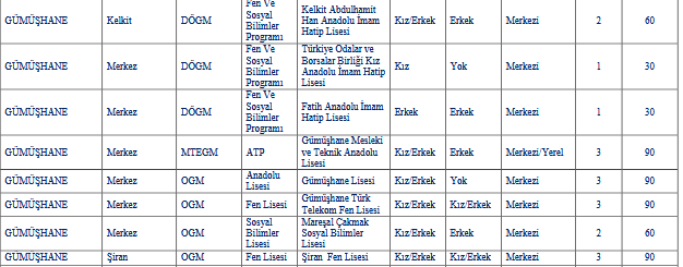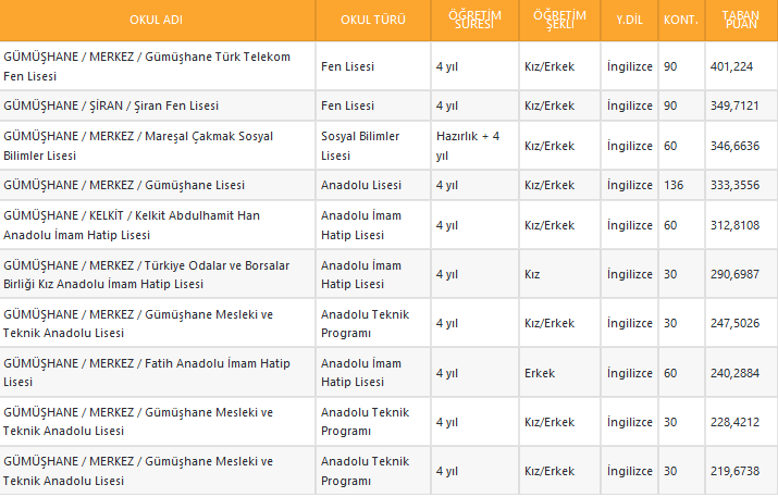 Gümüşhane liseleri taban puanları için tıklayınız...