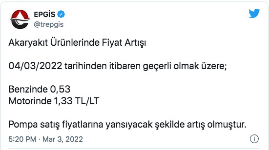 İşte EPGİS'den alınan bilgiye göre, 4 Mart Perşembe güncel benzin ve mazot fiyatı: