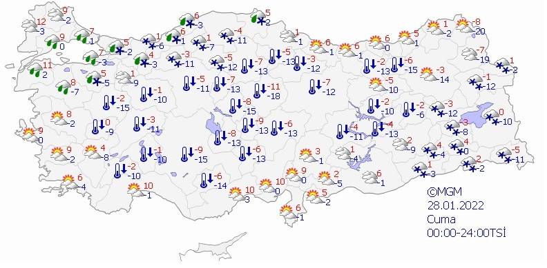 Hava durumu 24 25 Ocak! Yurdun büyük bölümü kar yağışının etkisi altında. Bu sebeple pek çok kişi yeni haftada havanın nasıl olacağını merak ediyor. İstanbul Ankara İzmir Trabzon hava durumu