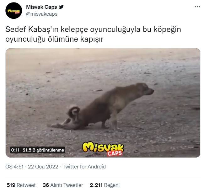 Videodaki sokak köpeğinin oyunculuğuyla Sedef Kabaş'ın ters kelepçe tiyatrosunu kıyaslayan Misvak, videoya şu notu düştü: