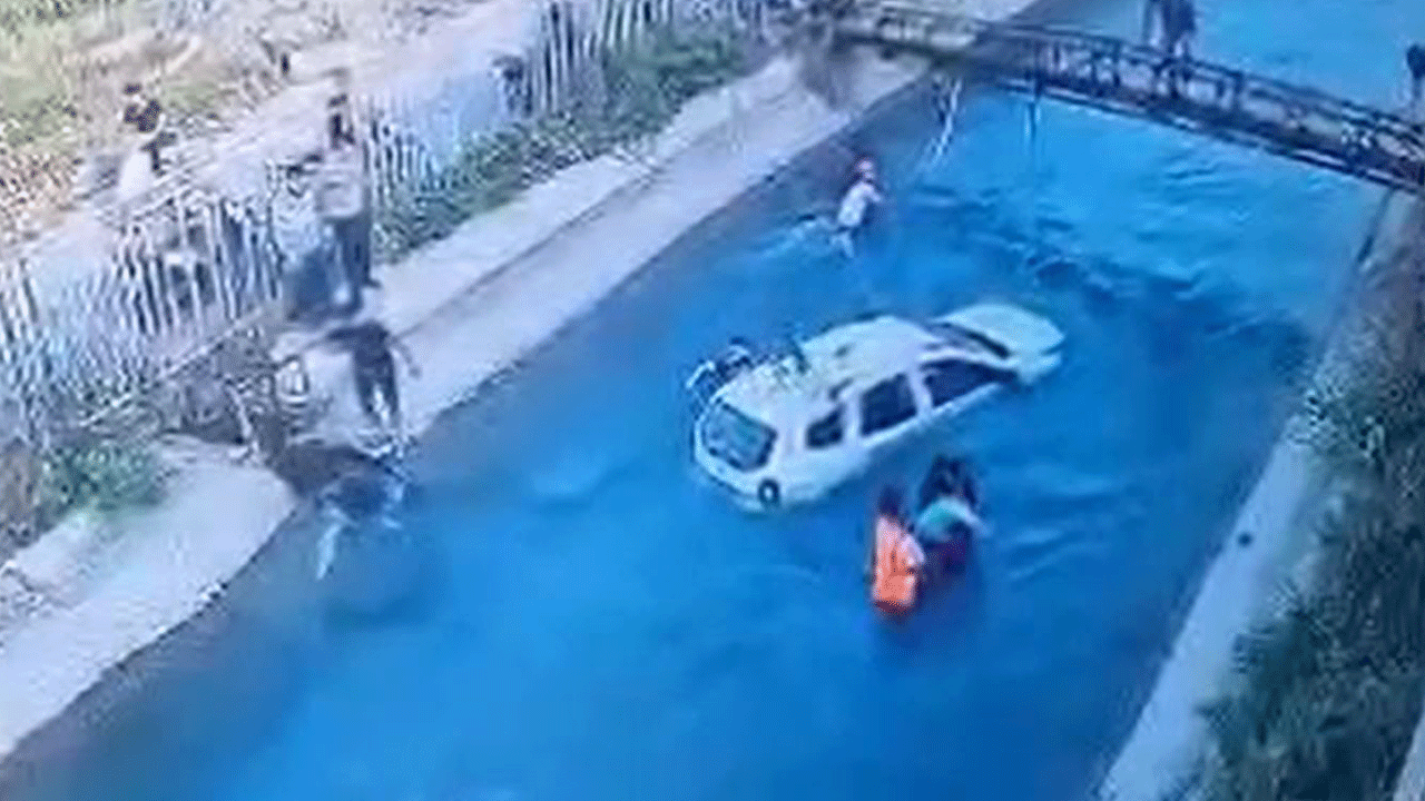 Durumu gören çevredekiler, kanala atlayarak 2 kişiyi güçlükle kıyıya çıkardı. Olay güvenlik kamerasına yansırken, kazayla ilgili inceleme başlatıldı.