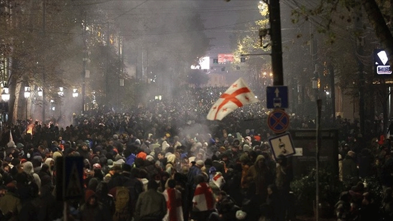 Başbakan İrakli Kobakhidze'nin, AB'ye katılım müzakerelerini 4 yıllığına askıya alması kararını eleştiren göstericiler, 28 Kasım'da başlattıkları eylemlerini başkent Tiflis'te 7. gününde sürdürdü.