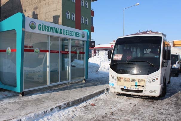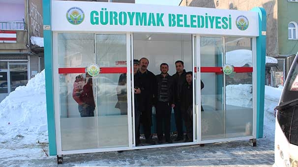 Güroymak'ta soğuk havalarda vatandaşların otobüs beklerken üşümemesi için "klimalı otobüs durağı" hizmete gridi. İlçe Kaymakamı ve Belediye Başkan Vekili Ufuk Özen Alibeyoğlu, yaptığı açıklamada, vatandaşların soğuk havadan etkilenmemesi için klimalı kapalı duraklar yaptıklarını belirtti.